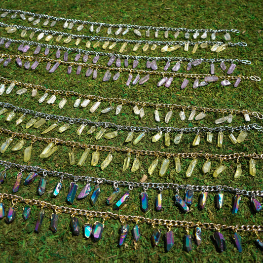 I create hand-made adornments that blend beauty with intention. Each bracelet, crown, and body chain is crafted from high-quality semi-precious stones, double-wrapped for enduring wear, and designed to be as unique as you are.